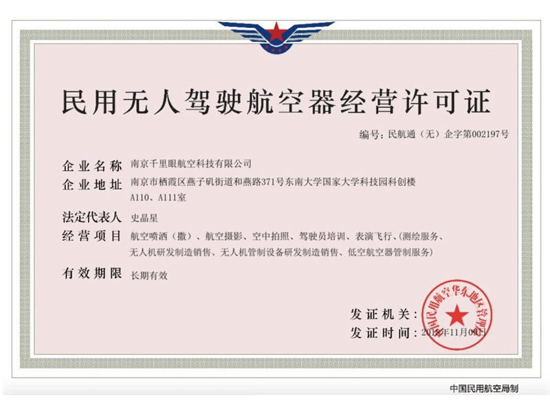 南京千里眼航空科技有限公司成立于2016年3月,創(chuàng)始團隊為軍隊原專業(yè)技術(shù)人員,專注于工業(yè)級無人飛行器、無人機管制設(shè)備的研發(fā)、生產(chǎn),屬于國家級高 新技術(shù)企業(yè),是江蘇省和南京市重點支持的創(chuàng)新型科技企業(yè)。